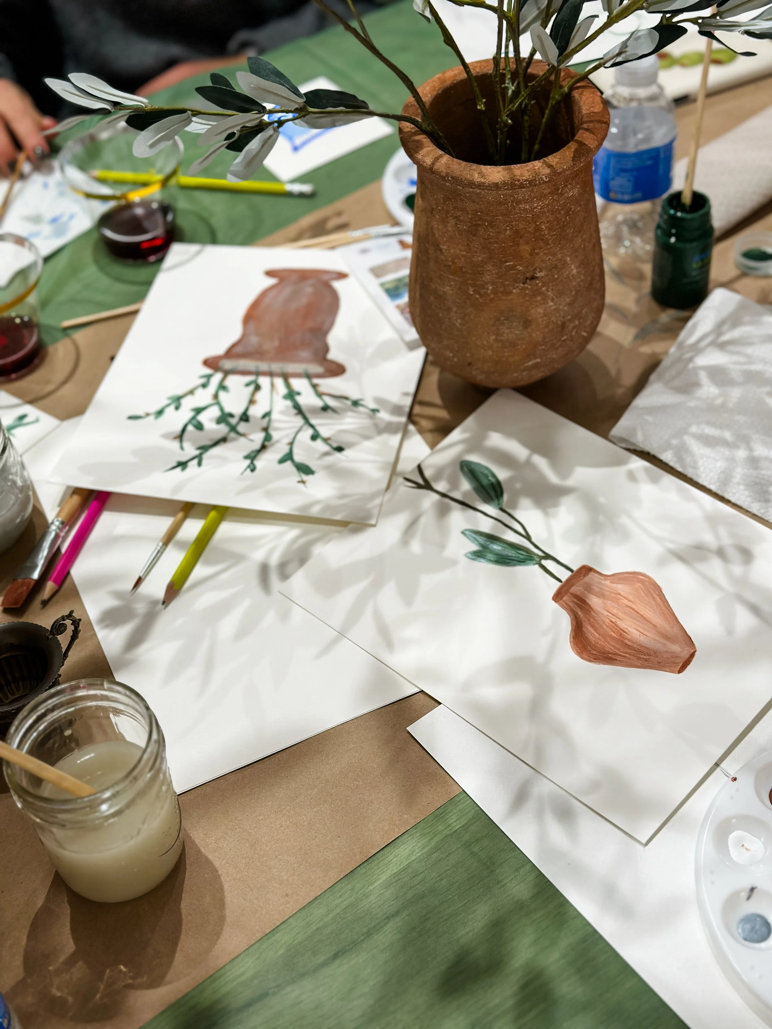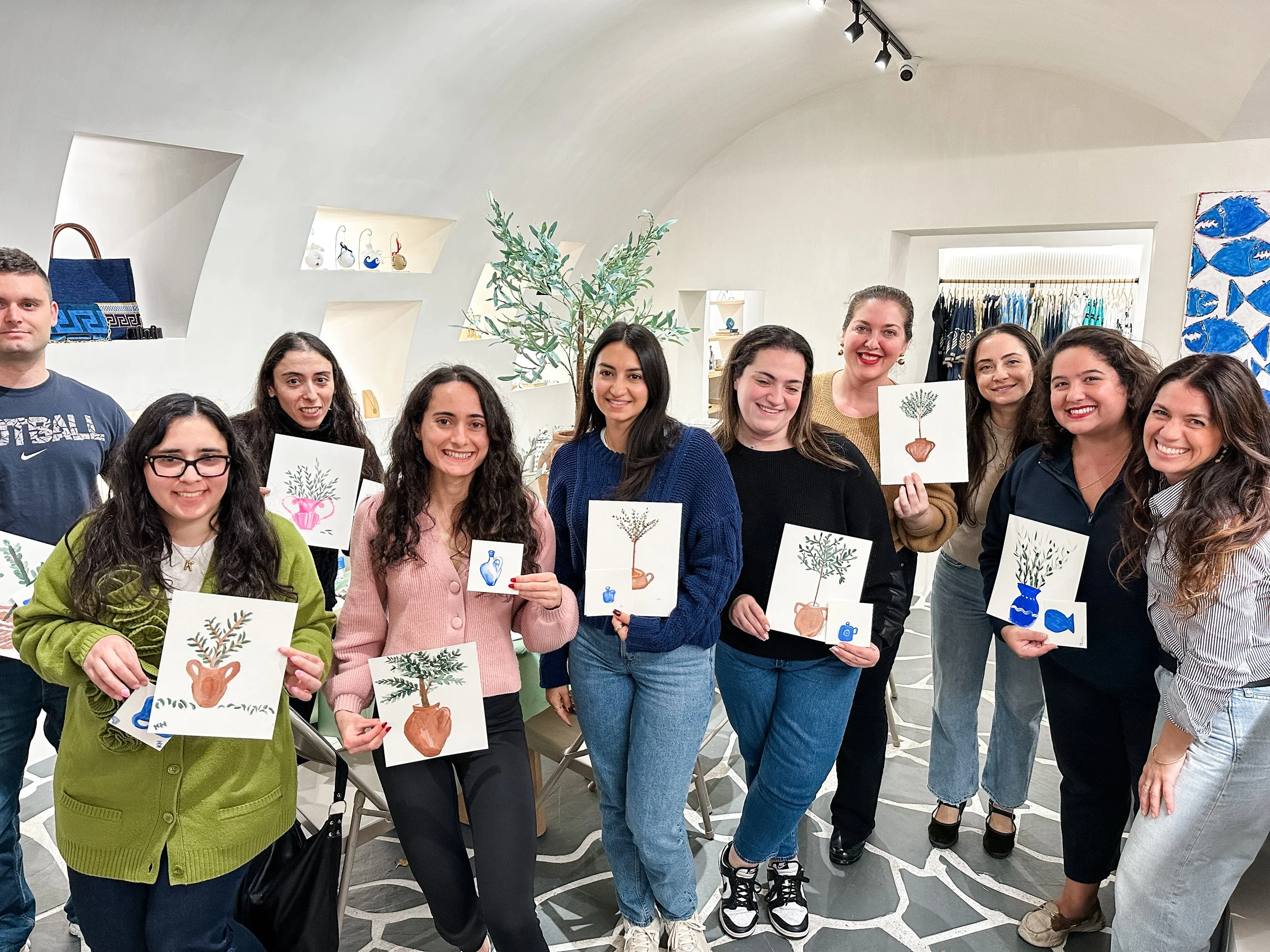 A fun alternative to traditional step-by-step instruction, akia art parties are explorative and uplifting experiences designed to build connections, with art as the surprising and delightful scaffolding. Inspiration is usually drawn loosely from Greece and the Mediterranean, ancient and modern. Participants leave with fuller hearts, plus art that you create yourself — a perfect reflection of you. The goal is the process just as much as the end result.